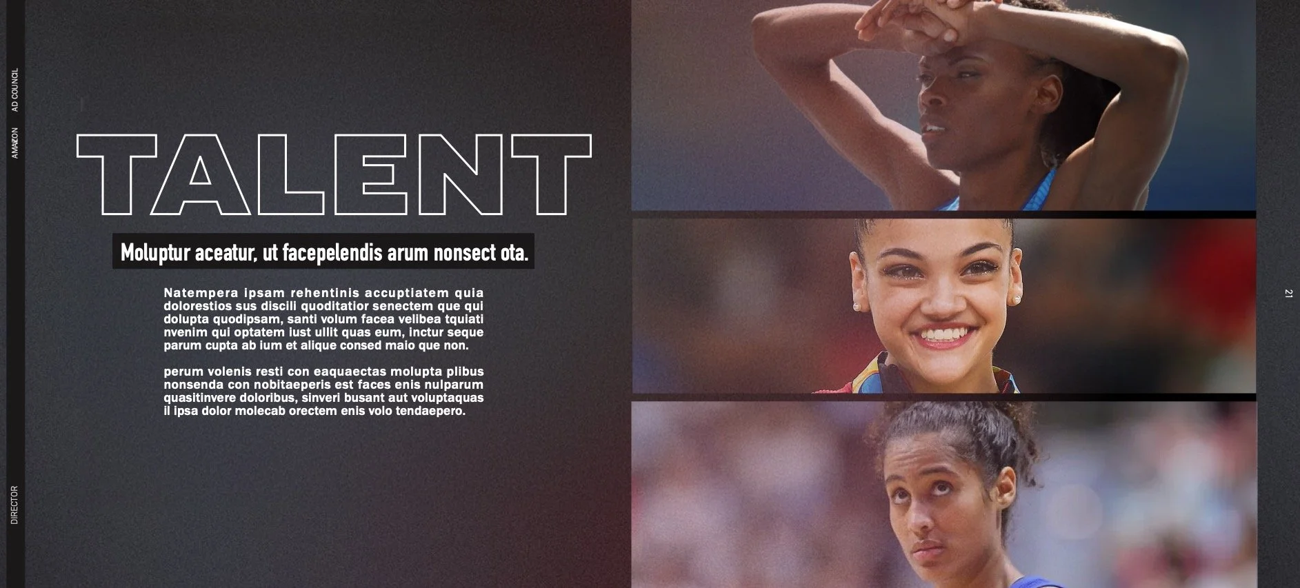 Brands we’ve recently worked on include: Adidas, AFL, Axe, Beats, Core Hydration, Crunch Fitness, DAZN, Degree, Dick's Sporting Goods, Draft Kings, EA Sports, ESPN, Famous Footwear, FanDuel, Gatorade, Gillette, Mountain Dew, NASCAR, NBA, NBC Premier League, NFL, NHL, Nike, PGA Tour, REI, Russell, Sunday Night Football, US Open, USTA And WWE Raw, amongst others.